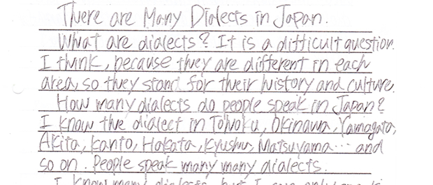 海外生活で身につけた会話力をキープするにとどまらず、海外の学校で使われている読解の問題集を使ったり、当スクール独自のワークシートを使ったりして、ジャーナルはもちろんエッセーも書き、更なる語学力・文章力の向上を目指します。