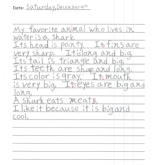 小学校高学年になるころには当スクールの貸し出しシステムでかりて帰れる英語の本も自分で読めるようになり、読書を通して得る語彙力や表現がまた、文章を書くときに反映され、子供の進歩を目の当たりにすることができます。